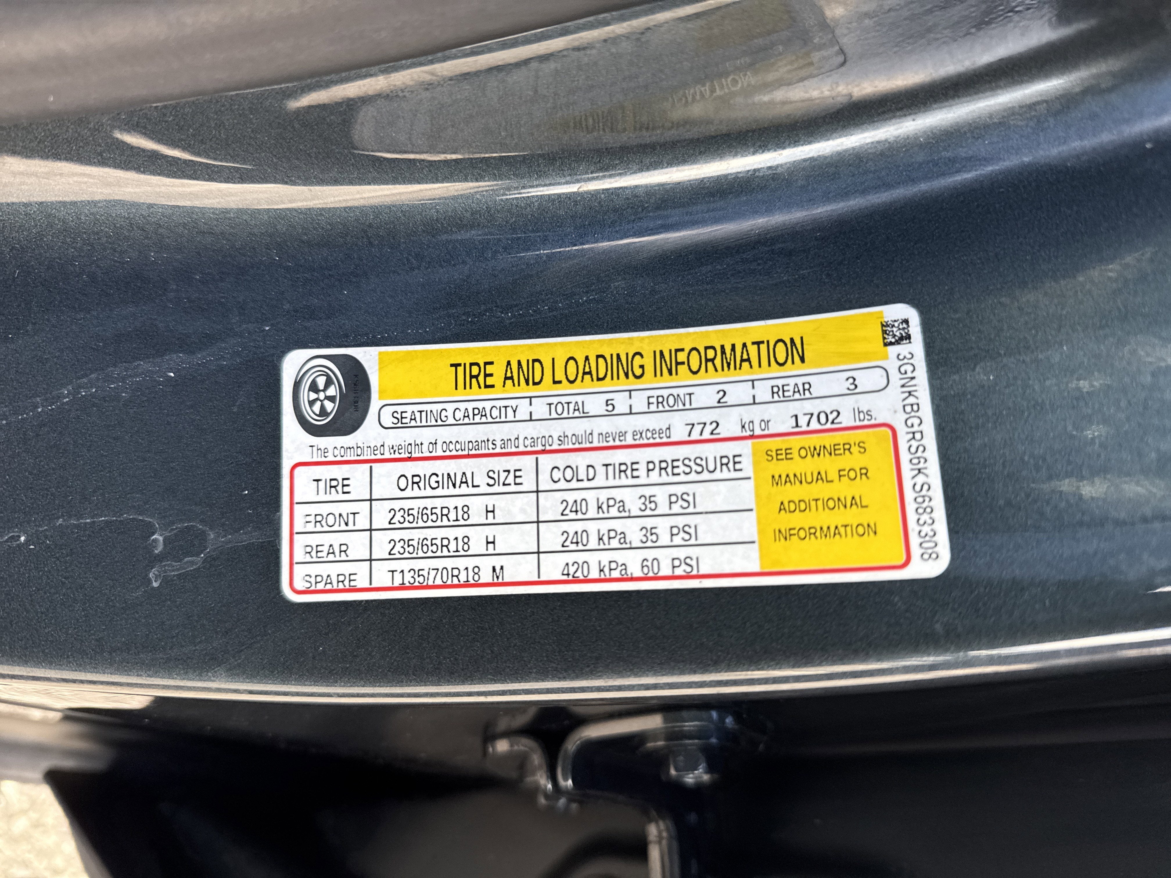 - Tires, P235/65R18 all-season blackwall