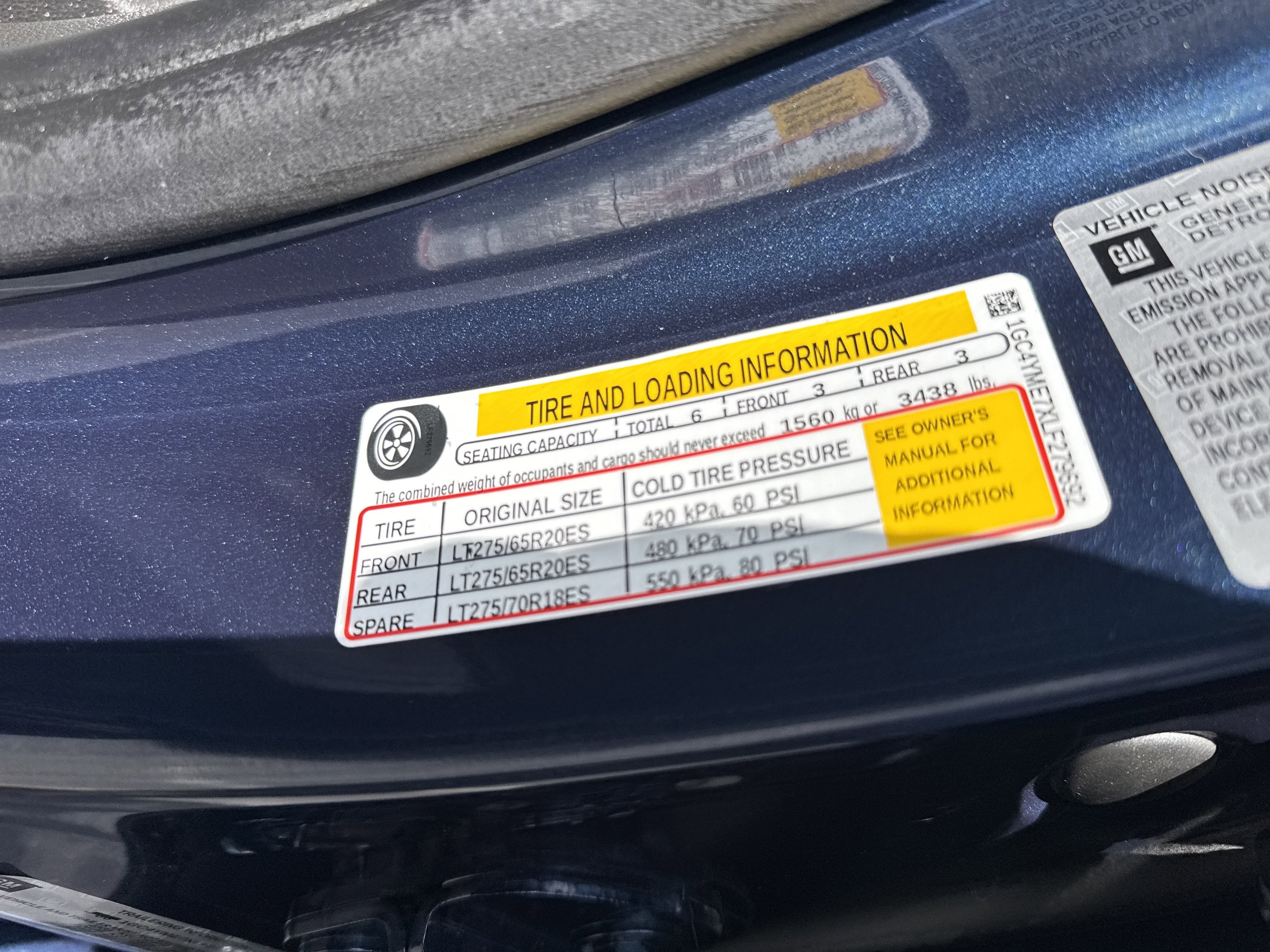 - Tires, LT275/65R20 all-terrain, blackwall