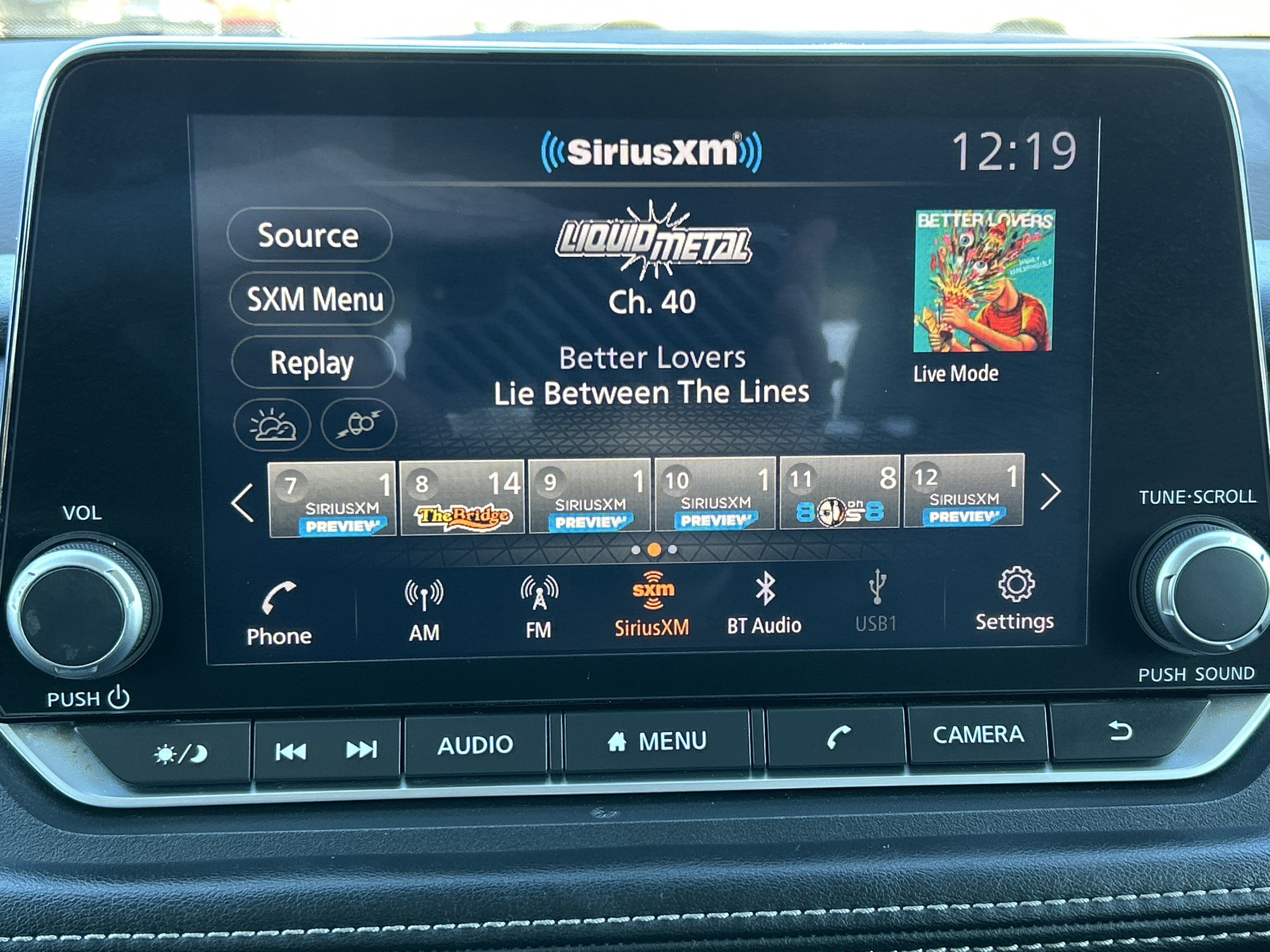 - Radio: AM/FM -inc: 6 speakers, NissanConnect featuring Apple CarPlay and Android Auto, 8" color display w/multi-touch control, SiriusXM satellite radio, 2 illuminated USB connection ports (1 type-A, 1 type-C), Bluetooth® hands-free phone system, streaming audio via Bluetooth® and hands-free text messaging assistant